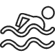 • A modern building with large windows overlooks a lit swimming pool area at dusk, creating a serene and inviting atmosphere.